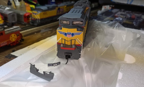 Once I was done cleaning the track, I started looking at the new Walthers SD70ACe UP engines I got for the automation. They need a bit of break in before I put them on automation.