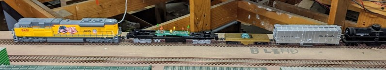 I was cleaning the balloon track on the Napa yard this morning, and realized the “DCC Dead Spot Detection Car” I made was very useful: the LEDs come on or off when the track has no conductivity. When the train runs, they sort of “blink”, and that can give us a real sense of how dirty the track is.