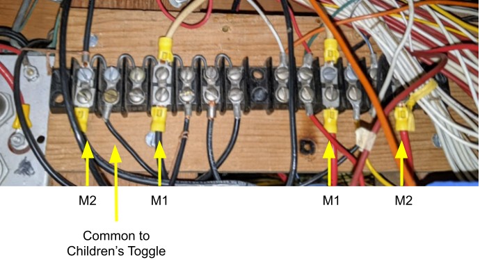 Update: Finally traced the one white + two red wires that were the output of the obsolete “Normal / Children’s” plug for the DC Junior Engineering Day, and which I removed. I found this: