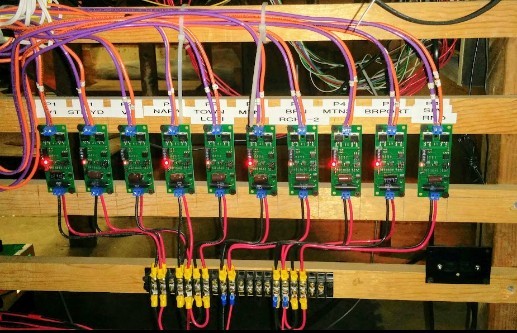 Location for the breakers. One philosophy is to place the breakers near their usage panel, which makes sense for a walk-around layout design -- the EB1 makes it easy to have a LED on the panel indicating when there’s a short.