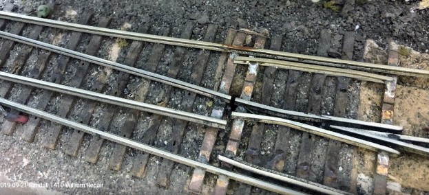 The point had broken on turnout T410, causing some engines to derail or get stuck on the rod. William fixed that on the spot by spiking the point. Since the turnout is on the mainline we don’t want trains to get stuck here.