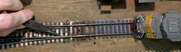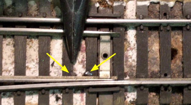 The proper fix is to adjust the point so that it can close properly, and to replace the Tortoise throwbar wire. A few articles out there (example here) indicate sometimes the throwbar wire provided with the Tortoise is not strong enough. However before getting there, I wanted to provide a quick fix to be able to let the daily automation continue and I wanted to isolate the problem so a temporary fix was set in place.