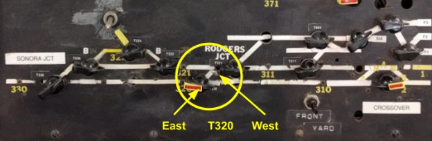 T320 is a crossover that brings trains from block B321 to B320 in our normal running direction.