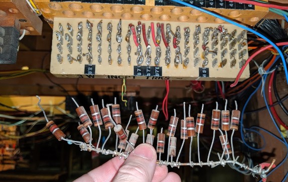 That is the back of the interconnection board for the Mountain Panel. There’s a similar one under the Valley Panel. The resistors are bias resistors for Twin T detectors. Although the lead DC red wire is not connected to anything that I can tell, it still means that any powered block can inject power into an unpowered block. Even across boosters. Think of the implications for a few seconds. No kidding.