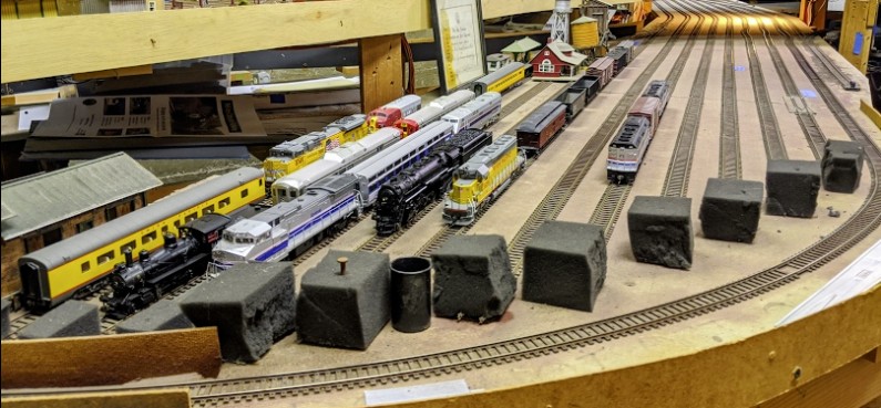 My strategy is to wait for the track to fix itself and then spend more time nailing it. Typical ways to avoid this is to glue the track (un-nail it, lift it, use caulk adhesive), and/or to ballast it like has been done for the track on the right side. That piece of track on the right side is technically part of the scenicked part of the Richmond yard that can be seen in the back, and it is interesting to note it has only been ballasted in the accessible portion of the track, and not under the Bridgeport yard overhang (which is out of arm reach to me). From this, I infer that the part that would benefit most from being glued/ballasted is the part out of reach, and not the place where I could actually do it. Which is why I have decided to not go that route for now.
