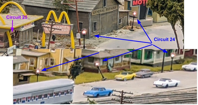 Circuit 24, Fairfield has many illuminated street lights, and Circuit 25 for Mc Donald’s interior: