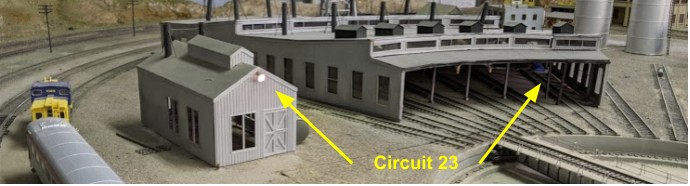 Circuit 23, “RH” (hard to see but there’s a wire with some blue tape in the roundhouse):