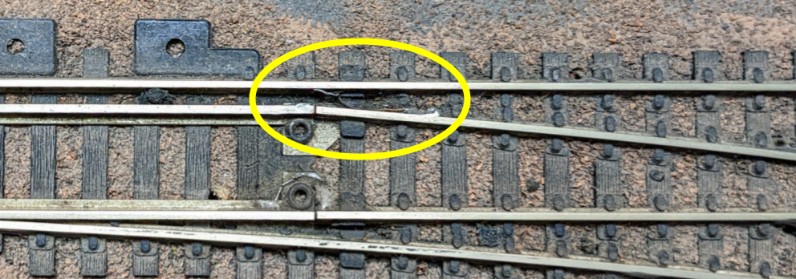 The only “real” issue we found is a little loose wire in one of the turnouts, apparently from a closure rail power feed: