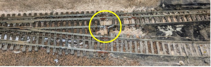 The only issue we encountered was a short when trying to use turnout T324 to go to the mainline. This was due to a fix I did in 2019 where I “joined” the turnout T821 to the adjacent track where there was an obvious gap. So basically we undoed that work -- Orion’s opinion is that the gap was intentional, and I concur with that as it is needed for the turnout to be able to change polarity when thrown for the mainline.