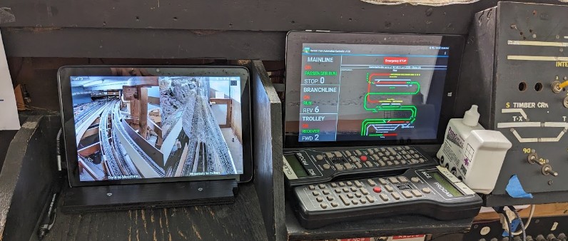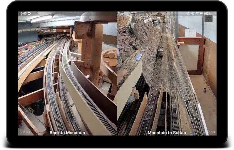 The tablet software named “Track Cam Monitor” (TCM) is designed to operate automatically. It starts automatically when the tablet starts, and stops the video feed when the layout power is turned off to preserve battery power on the tablet. That way, we never need to turn the tablet on and off -- it’s always on, except it’s in sleep mode when the layout is not powered. The cameras are also tied to the layout power and stop when the turnout is turned off.
