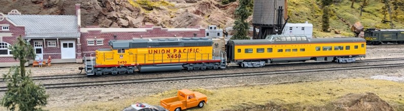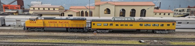The UP Passenger has this nice UP Observation/dome car provided by Jim, which has recently started to derail: