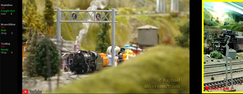 Most visitors will only need to see the status line under the videos -- it indicates whether the automation is stopped, or whether a train runs. For my own edification, I have details on the automation shown on the left side: