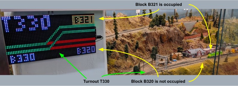This displays the status of the turnout T330 to the Saturday Operators, using a LED Matrix Display.