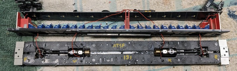 These units have 2 motors, one per truck. With time, they tend to get out of sync and “fight” each other. Since the Branchline is mostly flat, the units are ok with running on just one motor. I simply disconnect the other motor and remove one gear in the trucks to make one truck free-rolling.