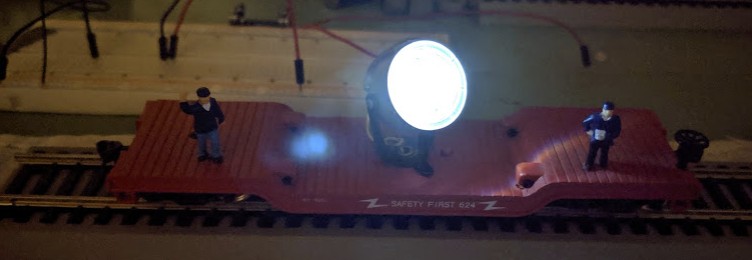 The car itself is a Model Power HO Scale “Safety First #624 Searchlight”. It’s a depressed flat car with a nice & sturdy die cast metal construction. It’s really well done.