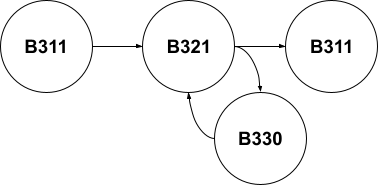 - Normal: B311 → B321 → stop/reverse → B321 → B311.