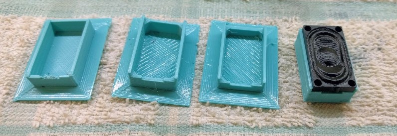 Anyway, after using the engine for a while, the speaker died. I decided to go back to a more regular speaker, the Soundtraxx 25x14mm Oval Speaker 810112. I’ve used that in the past and was really satisfied with its sound rendition. The only thing Soundtraxx does not sell is a baffle for it. They simply recommend to build one from scratch using styrene. My thing is 3D printing so I did just that: