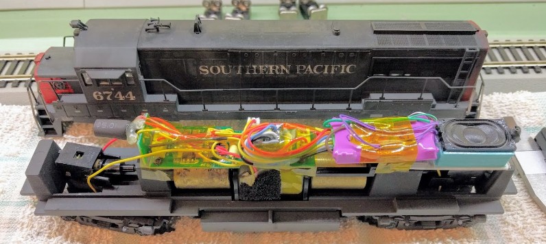 SP 6744 is a custom made HO scale GE U25B model from Bowser. A friend of mine got this DC engine (see history here) and I offered to add a DCC decoder to it. This was an interesting install so for once I think it’s worth detailing it.