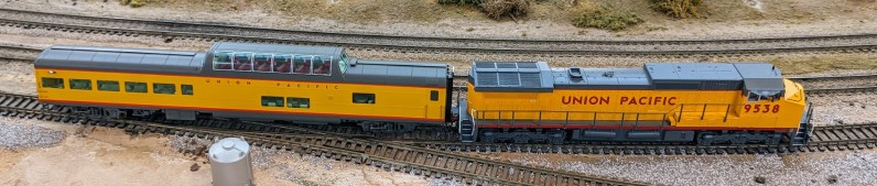 The UP Passenger has this nice UP Observation/dome car provided by Jim, which has recently started to derail: