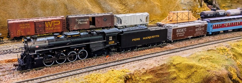 This uses the Père Marquette #1225 class 2-8-4 Berkshire steam engine, matching the “prototype” from the eponymous book and movie.