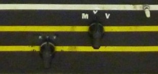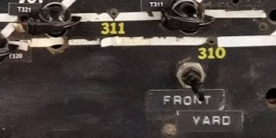 That’s the thing with a DC layout: interchange tracks are logically equipped with a power selector to power the track from one side or the other -- e.g. power from mainline, enter the train on the interchange, then power from the yard, proceed to yard. But now we have a combination of somewhat poorly labeled power selectors: on the yard panel on the left each interchange track has a “M Y V” selector (for Mountain / Yard / Valley) and on the valley panel on the right, there’s a Front Yard with “1 2” position. It’s important to realize the problem arises not when one panel is switched, but due to the interaction of both panels which are several feet away and control seemingly different things so there’s no mental connection between both.