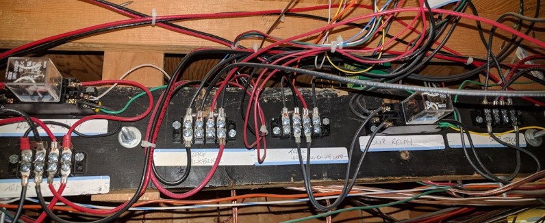 Tracing the “E” power lead brings me to an interesting contraption of relays under the Stockton Yard: