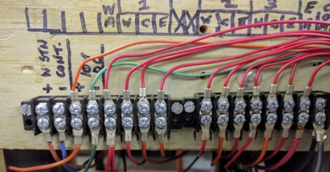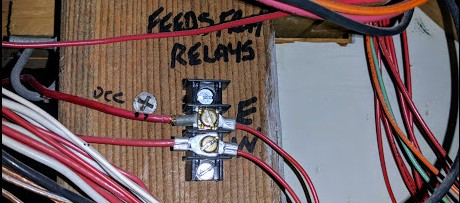 Panels relay: each current panel has a double relay which was used to select between DC, DCM, and DCC power. When converting to all DCC, I left these relays in place, even though they don’t select between anything. The relays are still powered by power from the main layout power toggle. This allows me to isolate a panel just by pulling the relay off, which is very convenient when doing some maintenance -- it’s my crude form of a security lock-out at the panel. I will likely not install such relays here. However power will go to a terminal block so that I can easily unpower each panel.