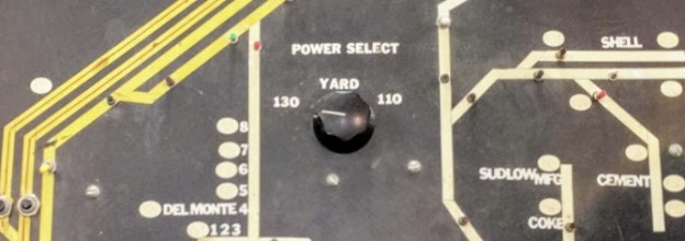 Power for the Fairfield panel is rather trivial. The panel currently has a power selector to power it from the B130 block (Sultan side), or B110 (Lodi side), or from the yard.