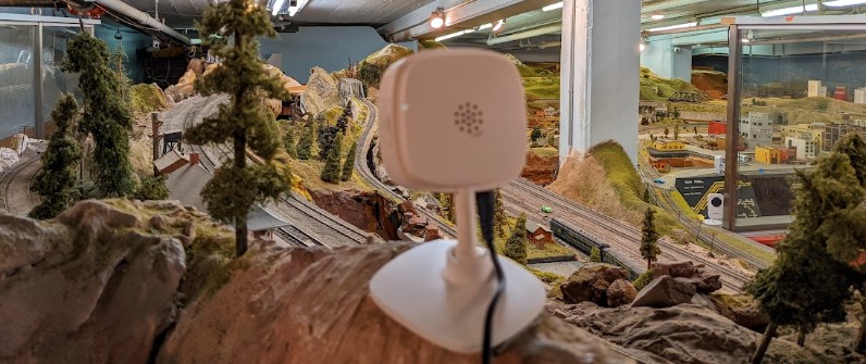 In the Train Vision project, one thing I wanted was to have a view from the top of the mountain and one from the Lodi area -- two areas where visitors cannot readily see the tracks right now. I do have the Edimax cams setup next to the visitor area as a placeholder but these don’t add a lot of value since these are areas the visitors can already trivially watch. The point is to highlight parts of the layout out of view from visitors, and that’s where having a smaller lighter camera that I can blend in with the scenery comes in.