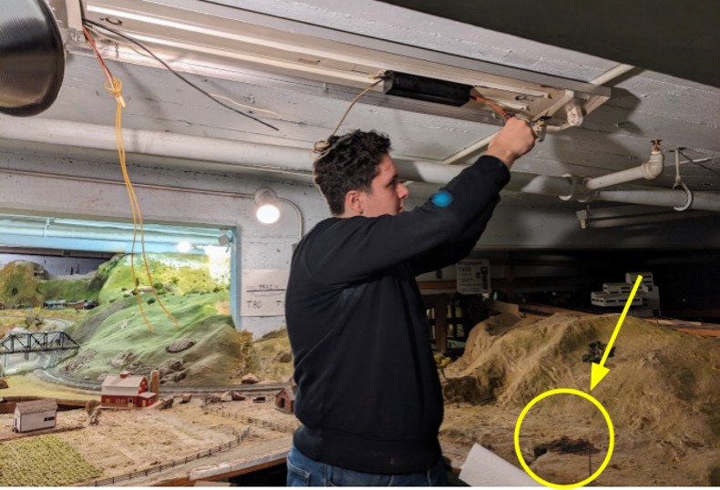 Since the ballast we removed is likely pre-1980, it likely contains Polychlorinated Biphenyl (a.k.a. PCBs), a useful yet ultimately proven extremely nasty chemical which has been banned since the 80s. That means we cannot just throw the old cover, ballast, and all the tainted paper towels in the trash. Right now they are just stored under the layout. I need to label them, then I need to work with the museum on how to dispose of them properly.