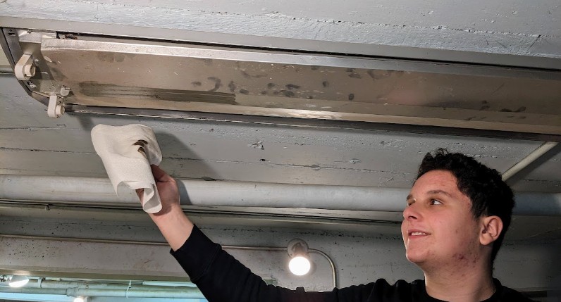 Category RandallToday, the museum was closed to honor Veterans Day. This was a great opportunity for Orion and I to tackle the task of updating the overhead fluorescent light from Lodi that has been dead for quite a while. My picture archives show the overhead light working back in 2015 and dead in 2017, after the museum renovation. We tried several times to change the fluorescent tubes for either “legacy” ones or LED, and none worked, thus leading me to believe that the ballast had died.