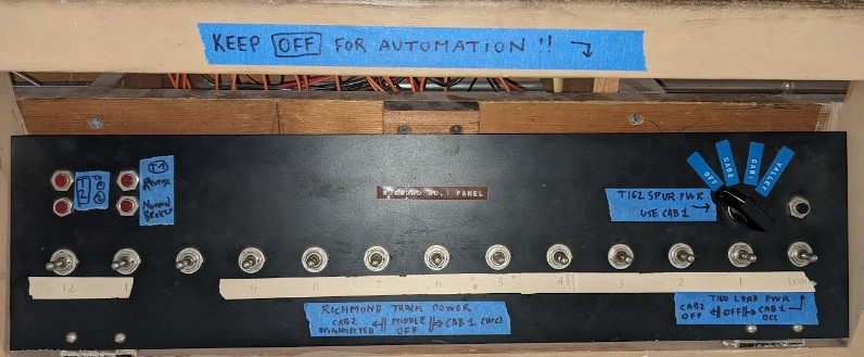 In between, the immediate workflow is to leave all the track unpowered in the Richmond Yard, and turn off the automation before getting a train in and out. That’s ok since that’s already more or less what the Saturday operators do. I updated my “written notes” on the panel to remind operators as such: