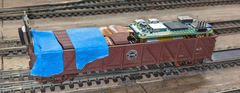The Raspberry Pi Zero 2 W neatly fits in an HO-size gondola car!