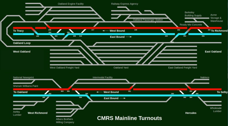 Category CMRSSome members at the CMRS train club (the Carquinez Model Railroad Society, in Crockett, CA) desired to have large touch panels that members could use to toggle switches on the mainline. For testing, one of the members procured 32-inch touch panels and I wrote a quick experimental software to display the mainline on it and control turnouts based on touch.